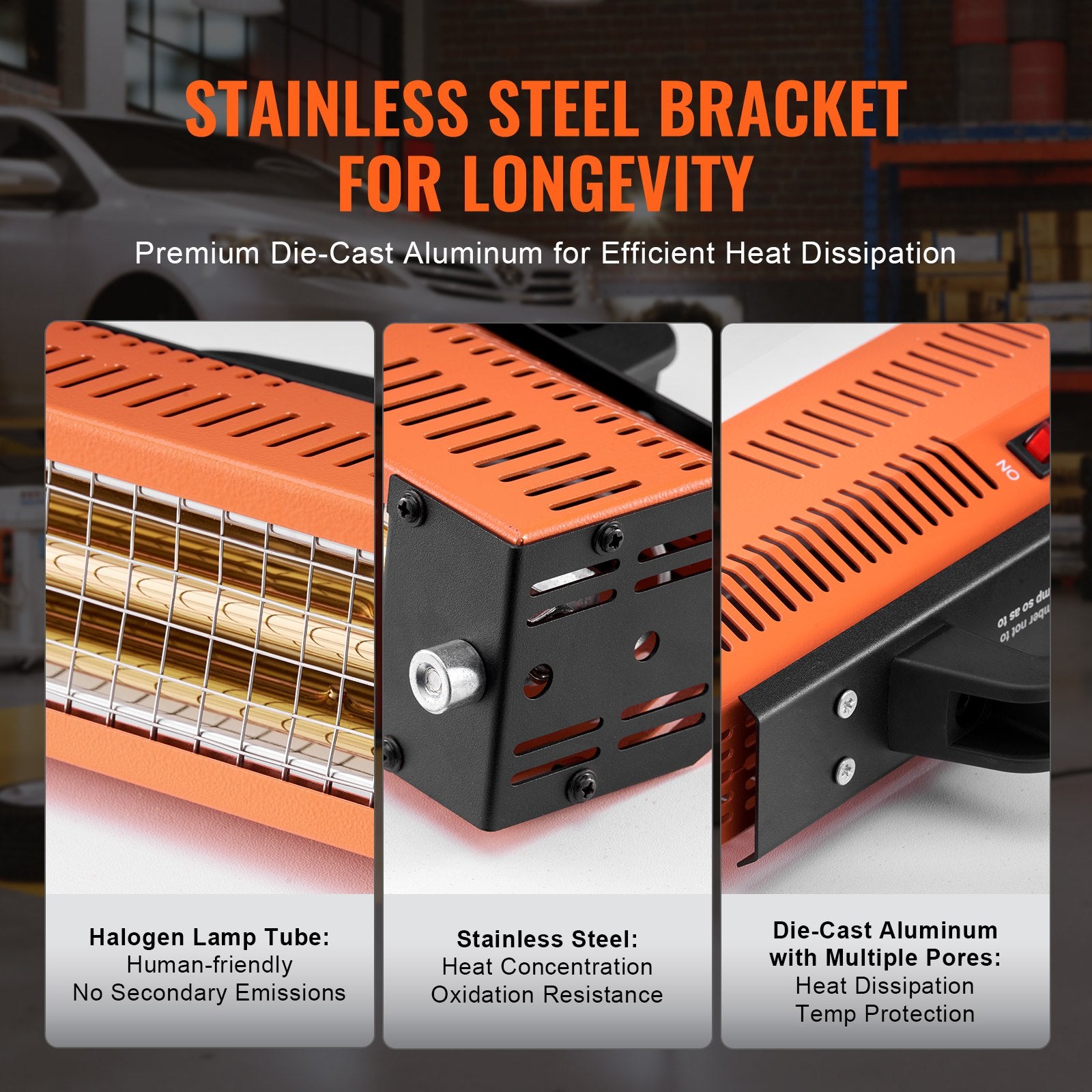 Säkerhetsskydd: För att ta itu med säkerhetsproblem, tillhandahåller vi högkvalitativa halogenlamprör och ett lampskydd i rostfritt stål mot oxidation. Den förtjockade basen säkerställer stabilitet och förhindrar skakning, vilket garanterar långvarig användning med sinnesfrid.