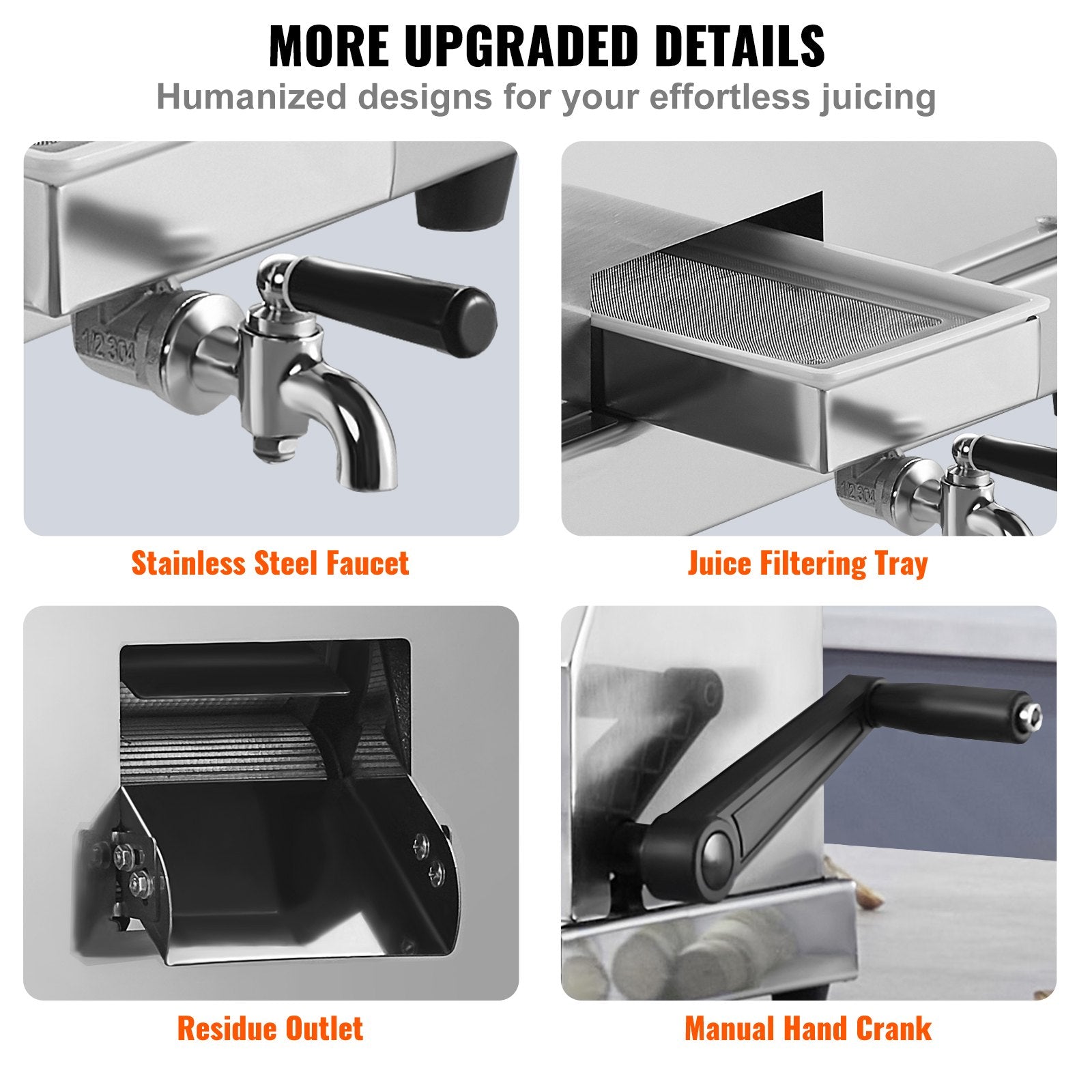 Effektiv juicepressningsproduktivitet: VEVOR manuell sockerrörsjuicer är utrustad med 3 solida rullar av rostfritt stål, tillsammans med en ergonomisk manuell vev, vilket gör sockerrörsjuicing mer enkel. 110 LBS/H hög produktivitet maximerar juiceproduktion och effektivitet.