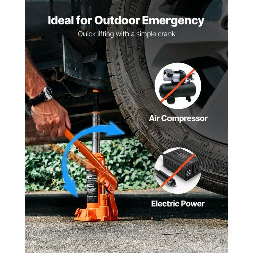 Kompakt och bärbar: Denna kompakta och lätta domkraft får enkelt plats i bagageutrymmet eller garaget. Redo att arbeta när som helst, var som helst – ingen kompressor eller elektricitet krävs.