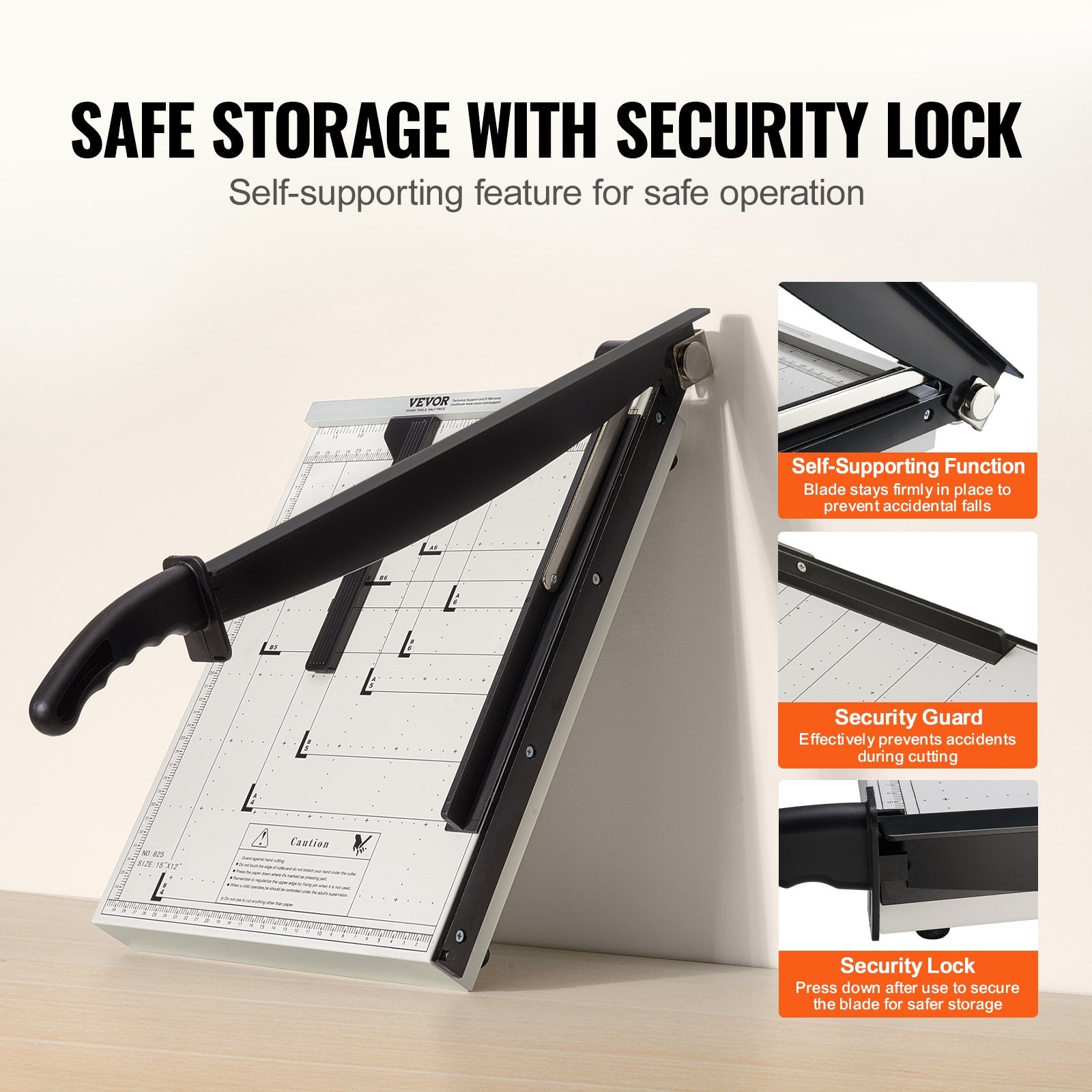 Enkelt och effektivt: VEVOR pappersskärare är designad för enkel precision. Med en linjal och en bekväm pappersklämma är det enkelt att använda. Det ergonomiska handtaget säkerställer ett bekvämt grepp, vilket gör det enkelt att justera papper av alla storlekar.