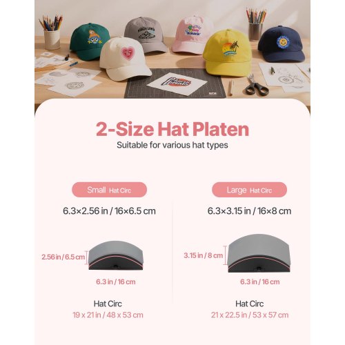 2-i-1 Mångsidig: Anpassa hattar med bilder av nära och kära eller specialdesignade mönster! Med två värmeplattor i olika storlekar uppfyller denna hattvärmepress dina olika behov och är enkel för nybörjare att använda. Låt din kreativitet flöda fritt