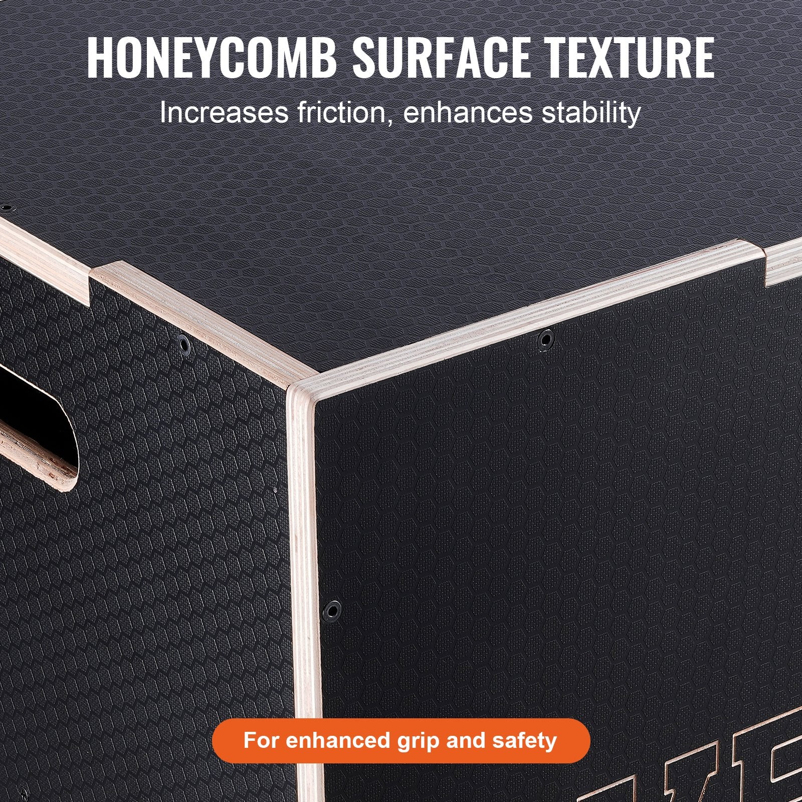 Säker och pålitlig: Plyoboxen är designad med flera slipprocesser för jämnhet, rundade kanter för att förhindra handskador och bärbara handtag för enkel rörelse. Ytan har ett bikakemönster för halksäkerhet, vilket ger stabilitet och grepp för att säkerställa säkra och effektiva träningspass.