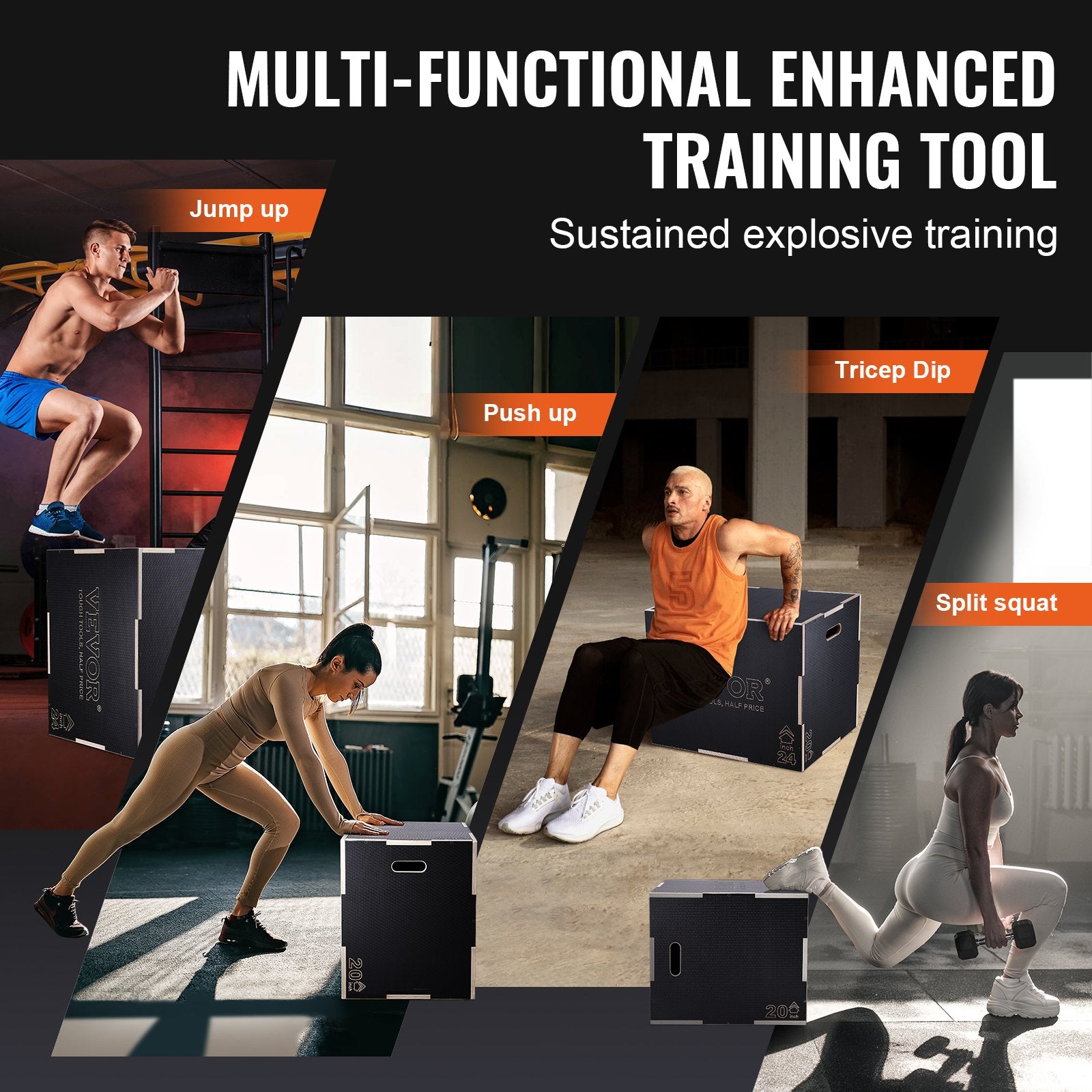 3 in 1 Plyometric Jump Box, 30/24/20 tums Plyo Box, Platform & Jumping Agility Box, Anti-Slip Fitness Exercise Step Up Box för hemmagympa träning, konditionsstyrketräning, svart