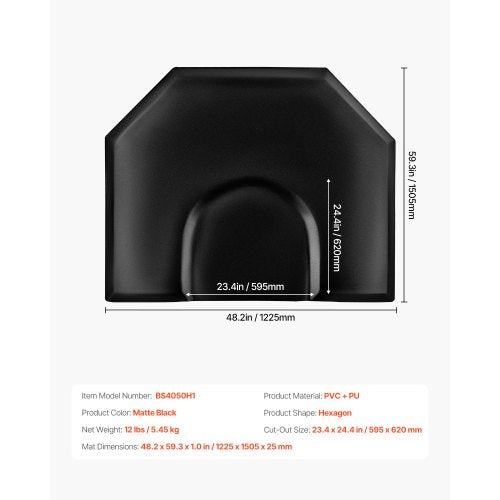 Extra stor storlek: Vår sexkantiga salongmatta på 1225 x 1505 mm för frisörer erbjuder en rymlig ståyta, vilket gör att barberare kan röra sig fritt och arbeta mer effektivt. Urtaget på 595 x 620 mm passar de flesta salongsstolar med rund bas och sitter säkert på plats utan att förskjutas.