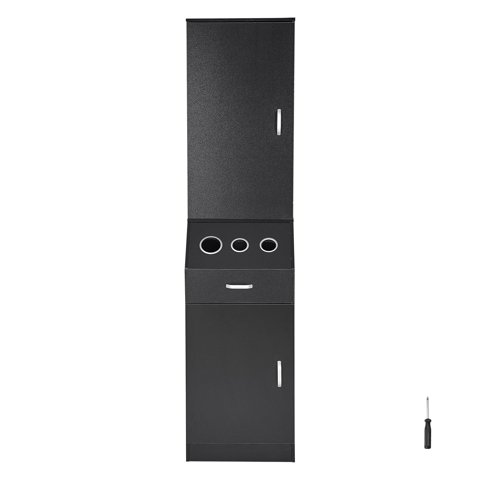 Salon Förvaringsskåp, Frisörsalong Station för frisör, Hårstylist Station Set, med 3 hårtorkhållare, skåp och en låda, svart
