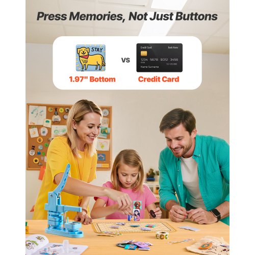 Skapa personliga presenter: Designa personliga märken för alla tillfällen. Vår knapptillverkningsmaskin fungerar även med speglar, nyckelringar, flasköppnare och magneter – förvandla din kreativitet till unika, hjärtliga minnessaker.