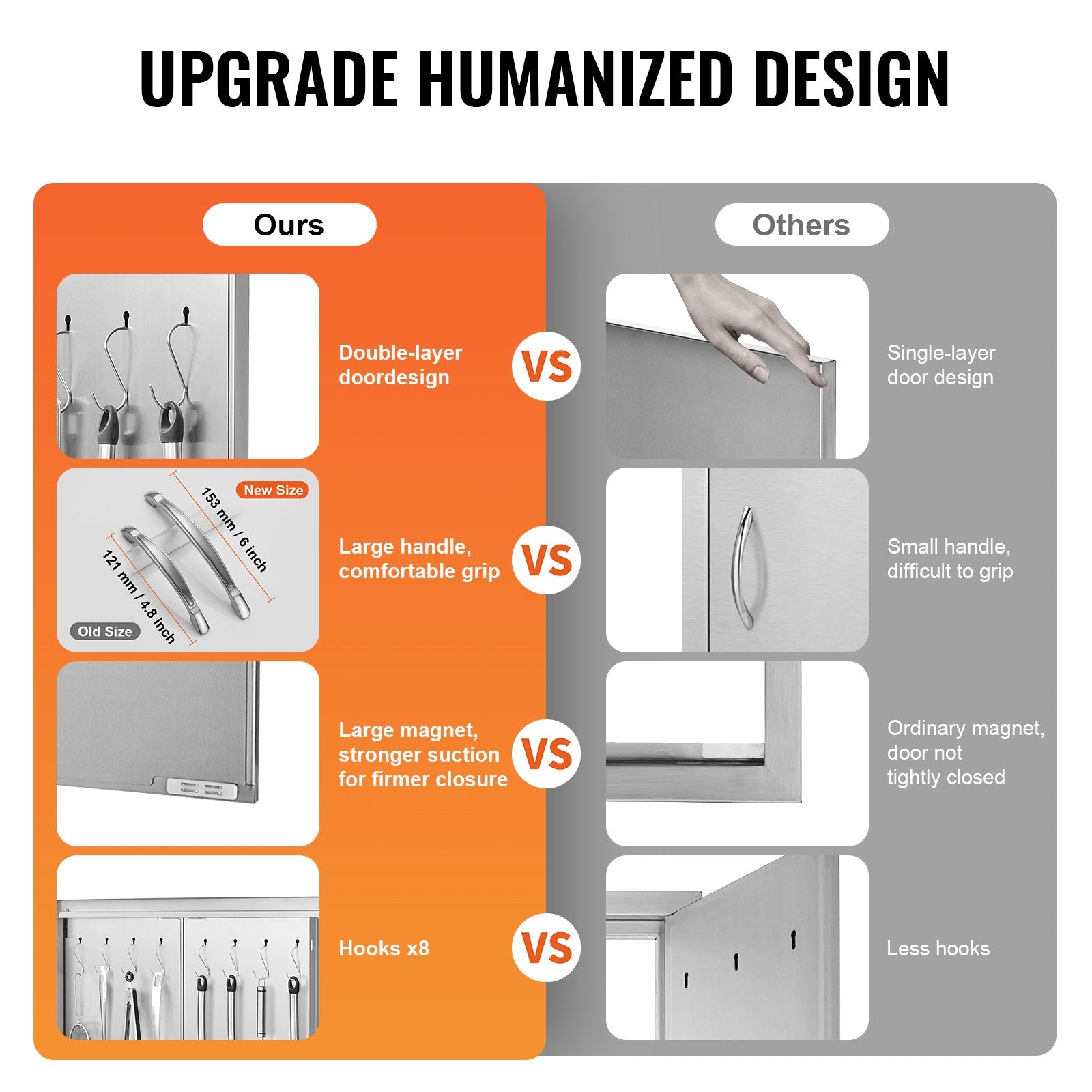 BBQ-åtkomstdörr, 787x609 mm dubbel utomhusköksdörr, infälld dörr i rostfritt stål, dubbelvägg vertikal dörr med handtag och krokar, för BBQ Island, grillstation, ytterskåp