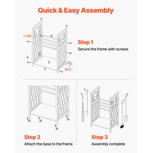 Innehåller 4 eldstadsverktyg: Vår vedhållare levereras komplett med tång, eldgaffel, kvast och spade – allt tillverkat av slitstarkt smidesjärn för långvarig prestanda och bekväm eldning.