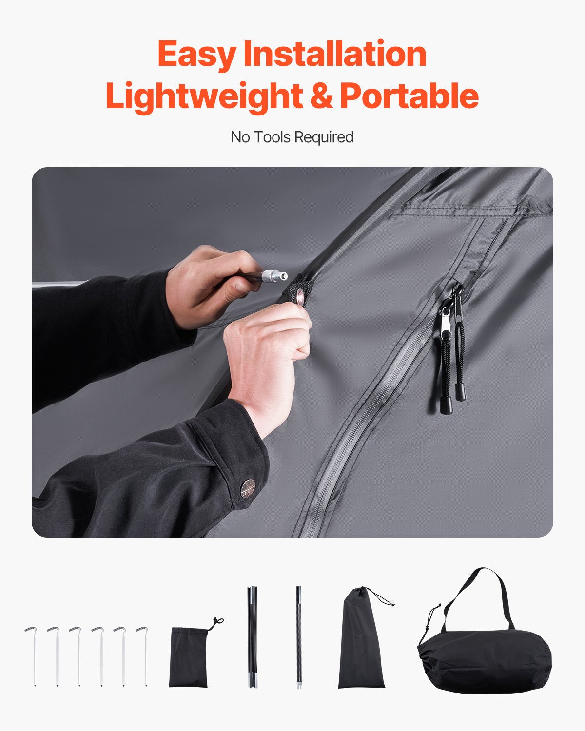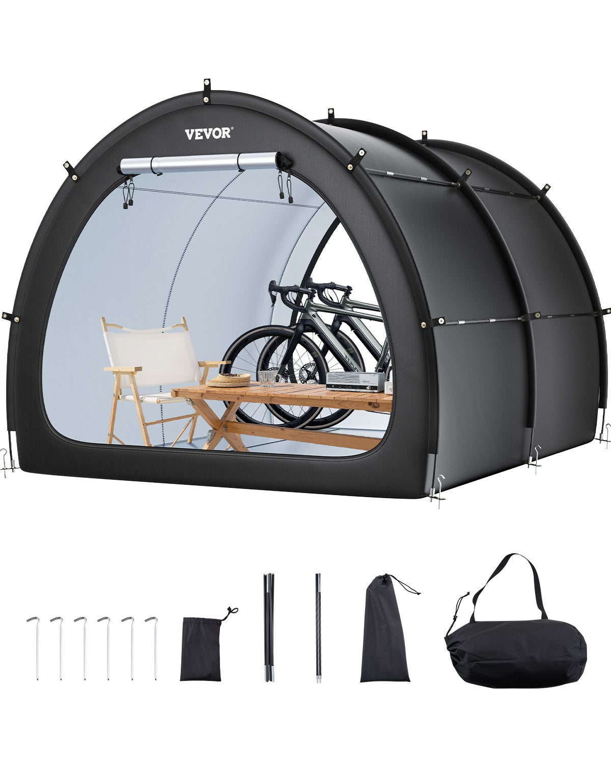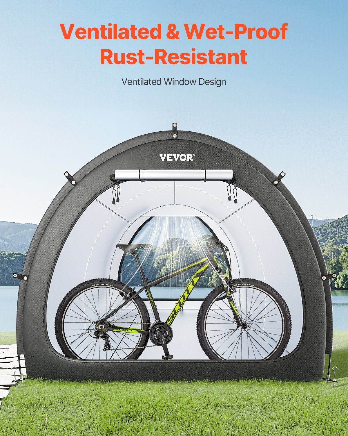 Robust och hållbar: Byggd med en förstärkt glasfiberram och en flerpunkts triangulär stabiliseringsstruktur, förblir vår cykelbod stabil och deformationsfri även i starka vindar och hårt väder. Glasfiberstängerna med en innerdiameter på 9,5 mm erbjuder bra korrosionsbeständighet och isolering, vilket gör den idealisk för långvarig utomhusbruk.