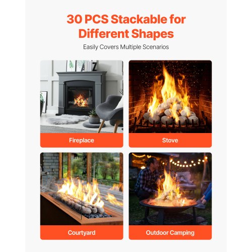30-DELARS Set: Stapla dem enkelt i olika former för att skapa en personlig dekorationseffekt! Lämplig för eldstäder, eldgropar, uteplatser och utomhuscamping, vilket garanterar värme och komfort överallt.