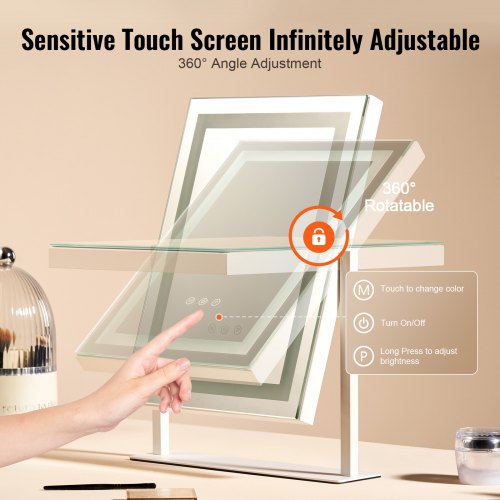 Sensitive Touch Adjustment Control: Rör bara med fingret för att justera ljusstyrkan, färgbelysningen, medan spegeln kan roteras 360° vinkel, oavsett om du står, sitter, kan uppfylla dina olika vinkelbehov.
