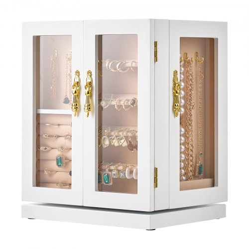 Smyckeskrin 360° Roterande Smyckeförvaring med 5 Rymliga Lådor Vit