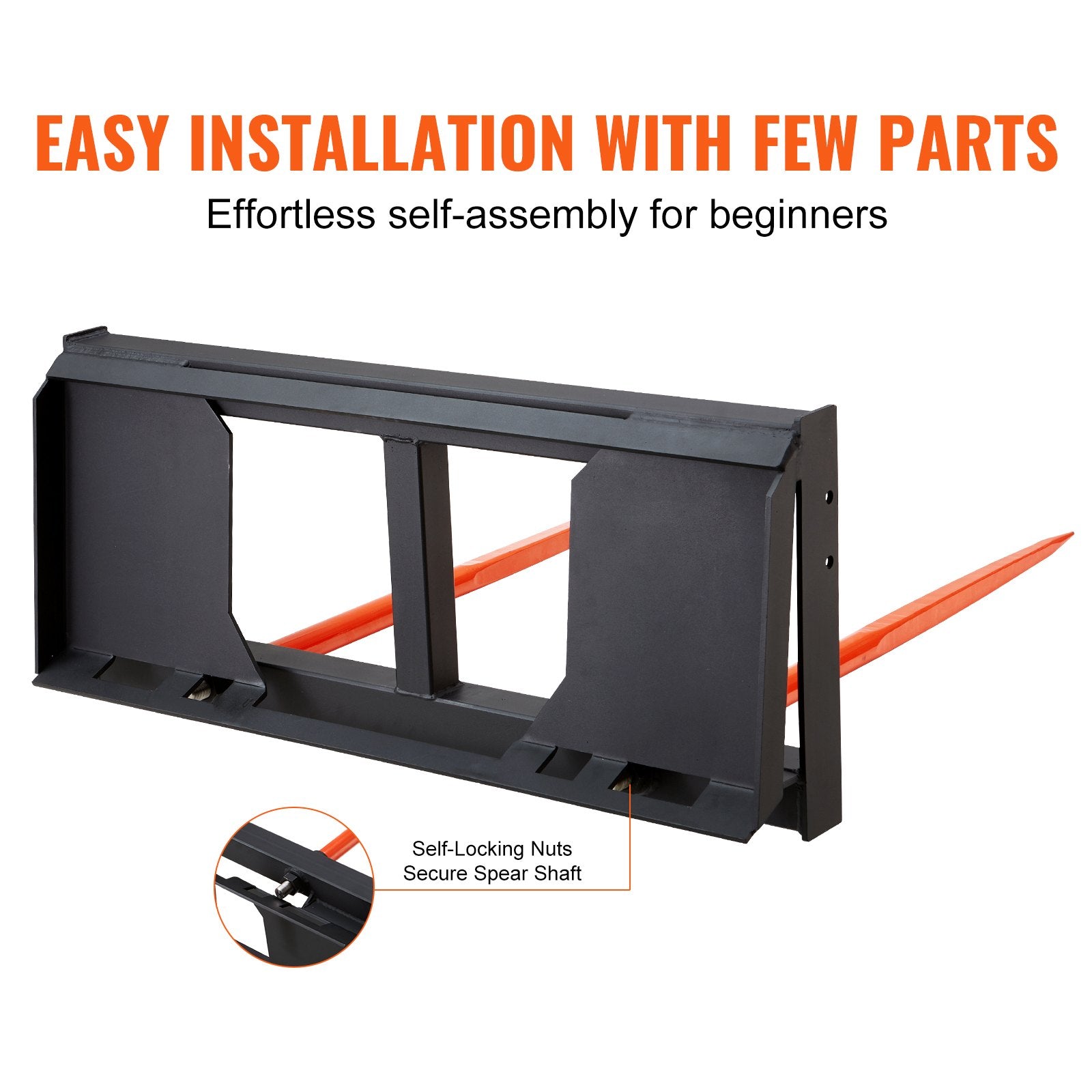 49" höspjut, balspjut 3000lbs lastkapacitet, minilastare Traktortillbehör 2 st spjut, snabbfäste spikgafflar