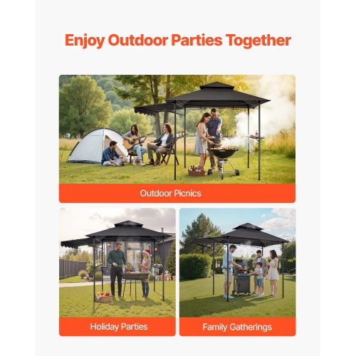 Festplats för alla väder: Från uteplatser och däck till poolkanter och trädgårdar, detta grilltält är ditt val för trädgårdsnöjen. Oavsett om du är värd för en helgmatlagning, familjepicknick eller utomhusfest, håller det igång festen oavsett regn eller solsken.