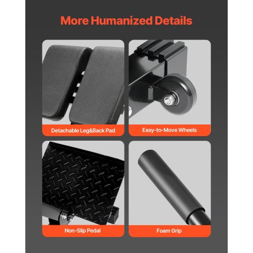 Mer humaniserade detaljer: Den avtagbara ryggdynan möjliggör anpassningsbara träningspass, så att du kan fokusera på specifika muskelgrupper. Stolens rörlighet ökar dess mångsidighet och gör den till ett praktiskt tillskott till alla träningsmiljöer.