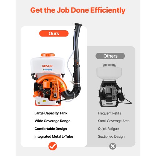 Kraftfull och effektiv täckning: Utrustad med en 63cc 3HP högpresterande motor, levererar denna ryggsäcksdimspruta en stark, jämn dimma med lång räckvidd och brett täckningsområde. Den är idealisk för bekämpning av insekter, dimning och storskalig sprutning.