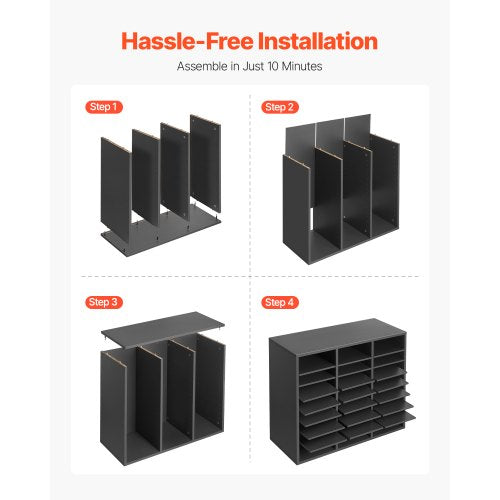 Anpassningsbar förvaring: Skräddarsy kontorsbrevlådan efter dina behov! Varje fack mäter 9,2 x 11,1 x 2,2 tum / 234 x 282 x 56 mm och rymmer upp till 500 A4-ark. Med justerbara hyllhöjder från 1,0-2,2 tum / 2,5-5,5 cm kan du enkelt modifiera eller ta bort hyllor för att rymma större filer eller kontorsmaterial.