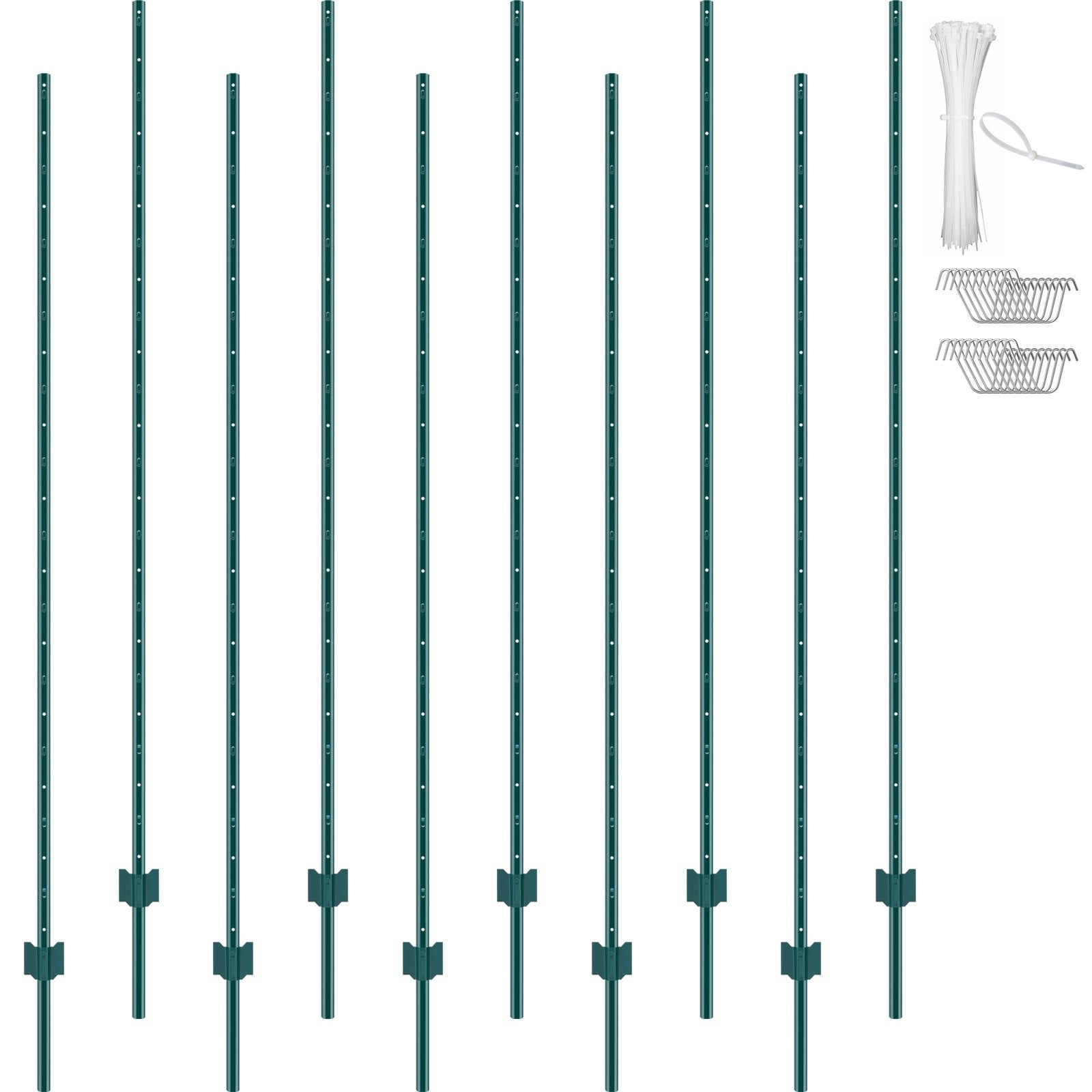 7 fot staketstolpe 10-pack T-stolpe Heavy Duty metall staketstolpar grön