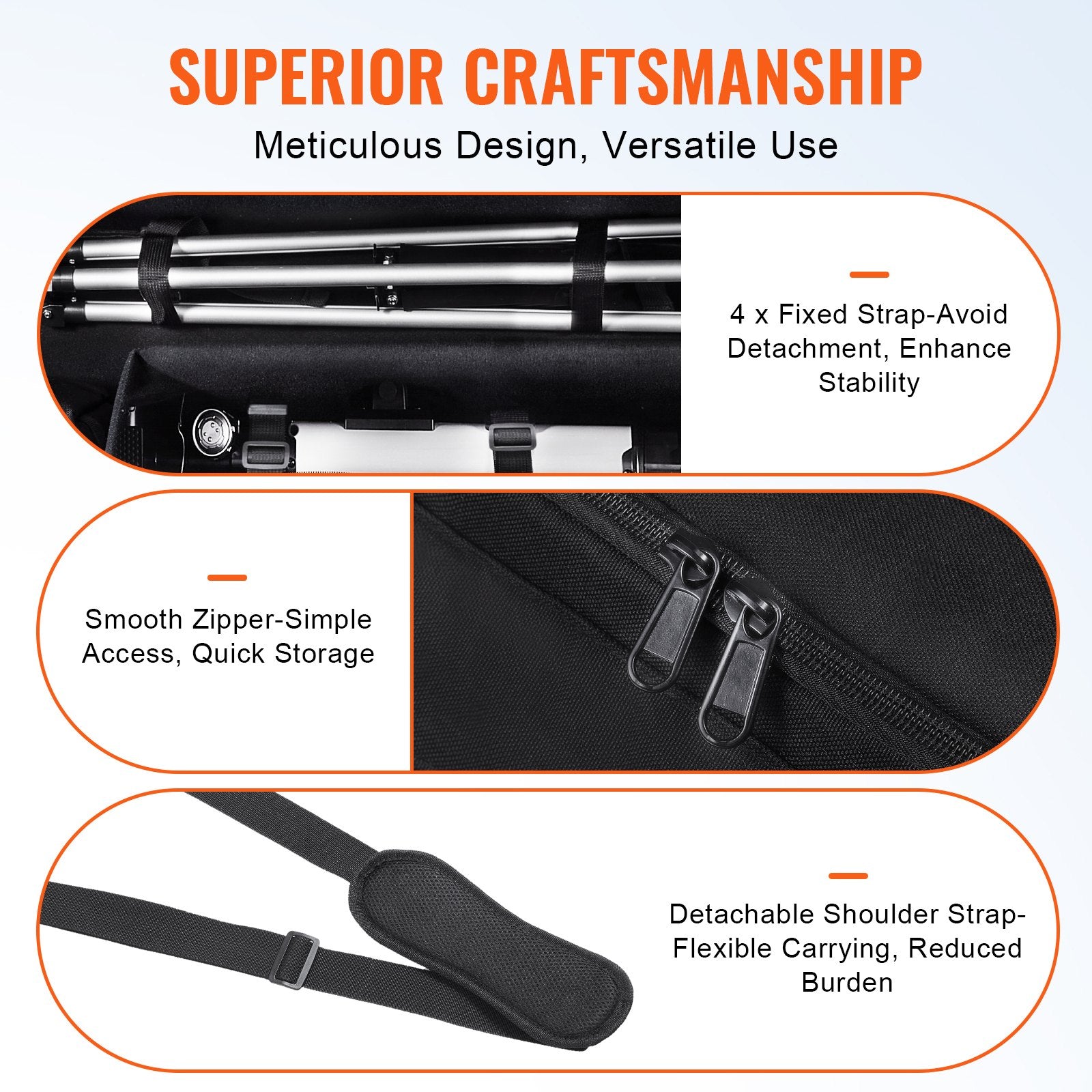 Multi-Pocket Partition: Teleskopfodralet har 3 ytterfickor och en motviktsficka för att organisera kablar, bärbara datorer, detektorer, okular och andra småsaker. Se till att dina observationstillbehör är välorganiserade. Förbättra din utomhusobservationsupplevelse.