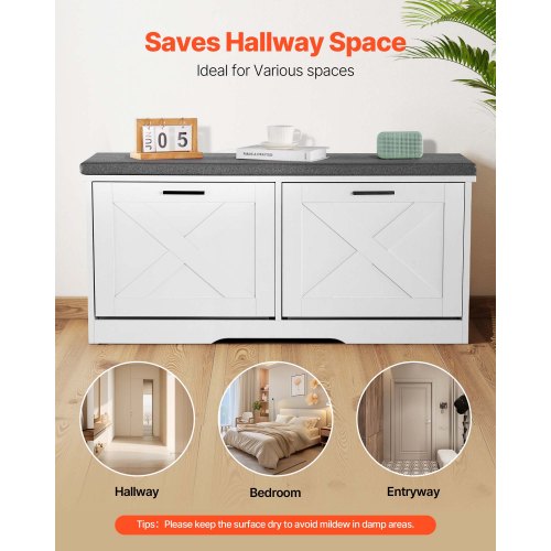 Bekväma sittplatser för skobyte: Skoskåpets ovansida är platt, robust och mycket stödjande, och bär lätt vikt utan att skadas. Den fungerar som en bekväm bänk, så du behöver inte stå, böja dig eller huka dig länge. Äldre familjemedlemmar och barn kan enkelt sitta ner, vilket gör varje in- och utgång smidigare och bekvämare.