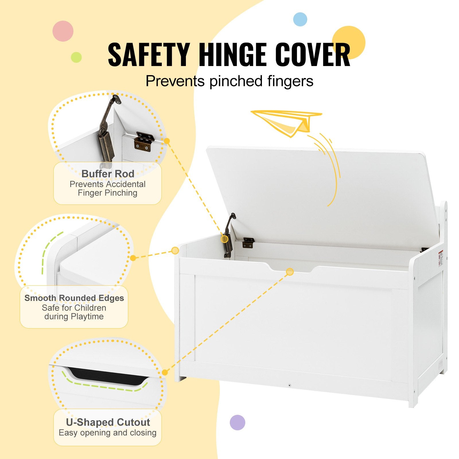 Säkerhetsgångjärnsdesign: Det lätta att öppna och stänga säkerhetsgångjärnslocket ger enkel åtkomst till leksaker och kläder, medan robusta gångjärn håller locket säkert på plats. Den unika spårdesignen förhindrar effektivt oavsiktlig fingerklämning, vilket säkerställer barnsäkerhet. Utrustad med handtag på båda sidor, är denna leksakslåda i trä lätt att flytta, så att du kan justera den till den perfekta positionen var som helst.