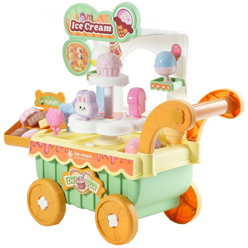 Lätt att flytta: Med ett bekvämt handtag och mjukt rullande hjul kan barn köra sin glassvagn vart som helst! Vare sig det är inomhus eller utomhus kommer de att tycka om att låtsas servera glass och leka affär med vänner.