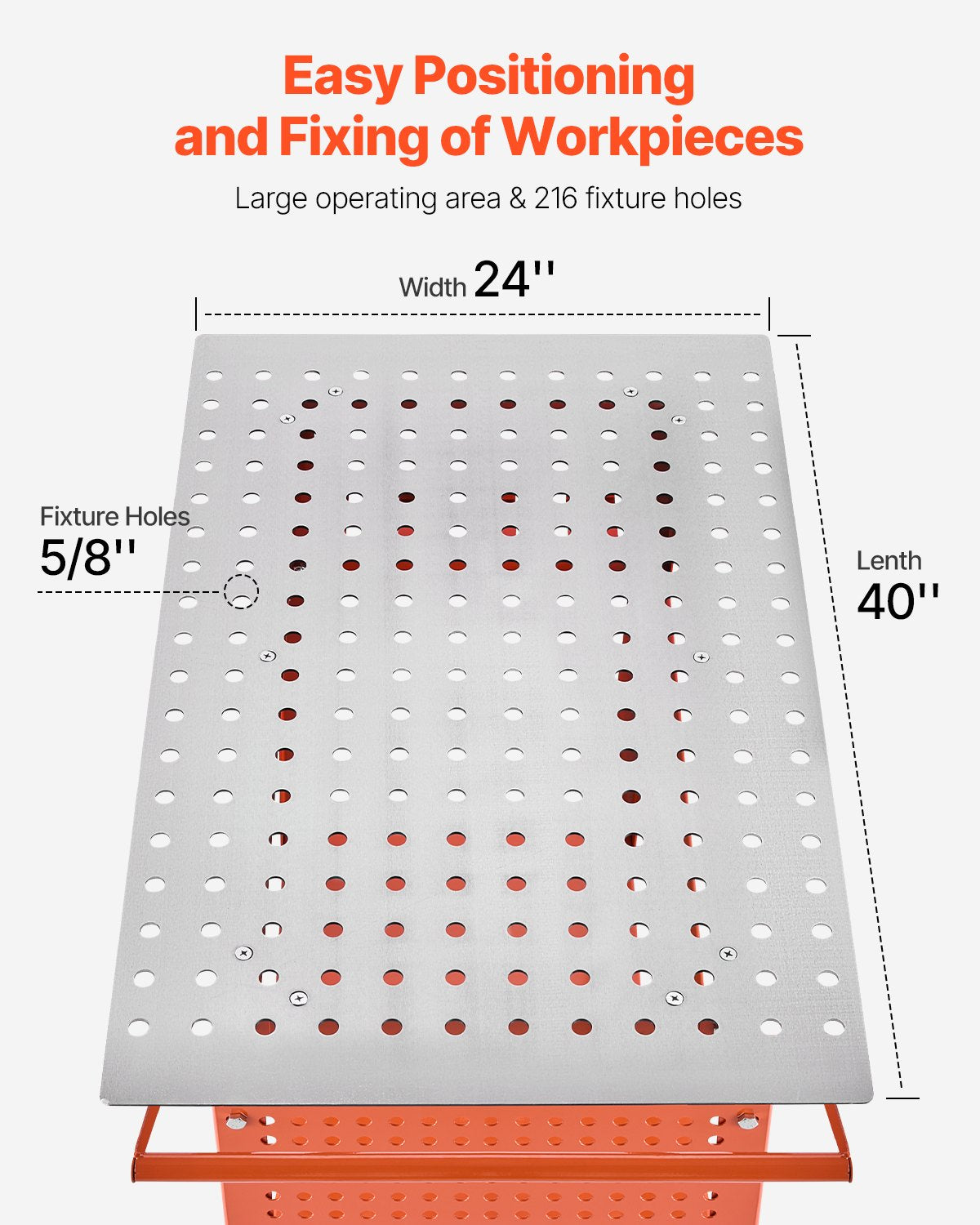 Uppnå felfria svetsar: Oavsett om du är en metallhobbyist eller en erfaren proffs, erbjuder det rörliga svetsbordet ett brett utbud av applikationer. Med en rymlig skrivbordsyta som mäter 40" x 24", ger den gott om utrymme, så att du kan svetsa med lätthet, flexibilitet och precision.