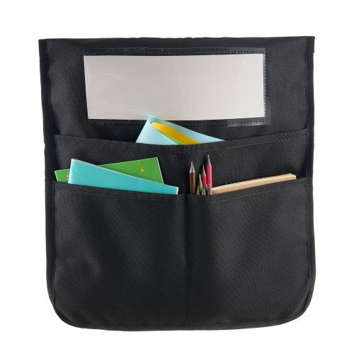 12-delat set med fickor till stolsryggar: Innehåller 12 svarta stolsfickor med namnetiketter, perfekt för årskurs 6-12. Varje väska, 45 x 50 cm, passar stolsryggar på 43 cm – perfekt för att organisera skrivbord och hålla allt inom räckhåll!