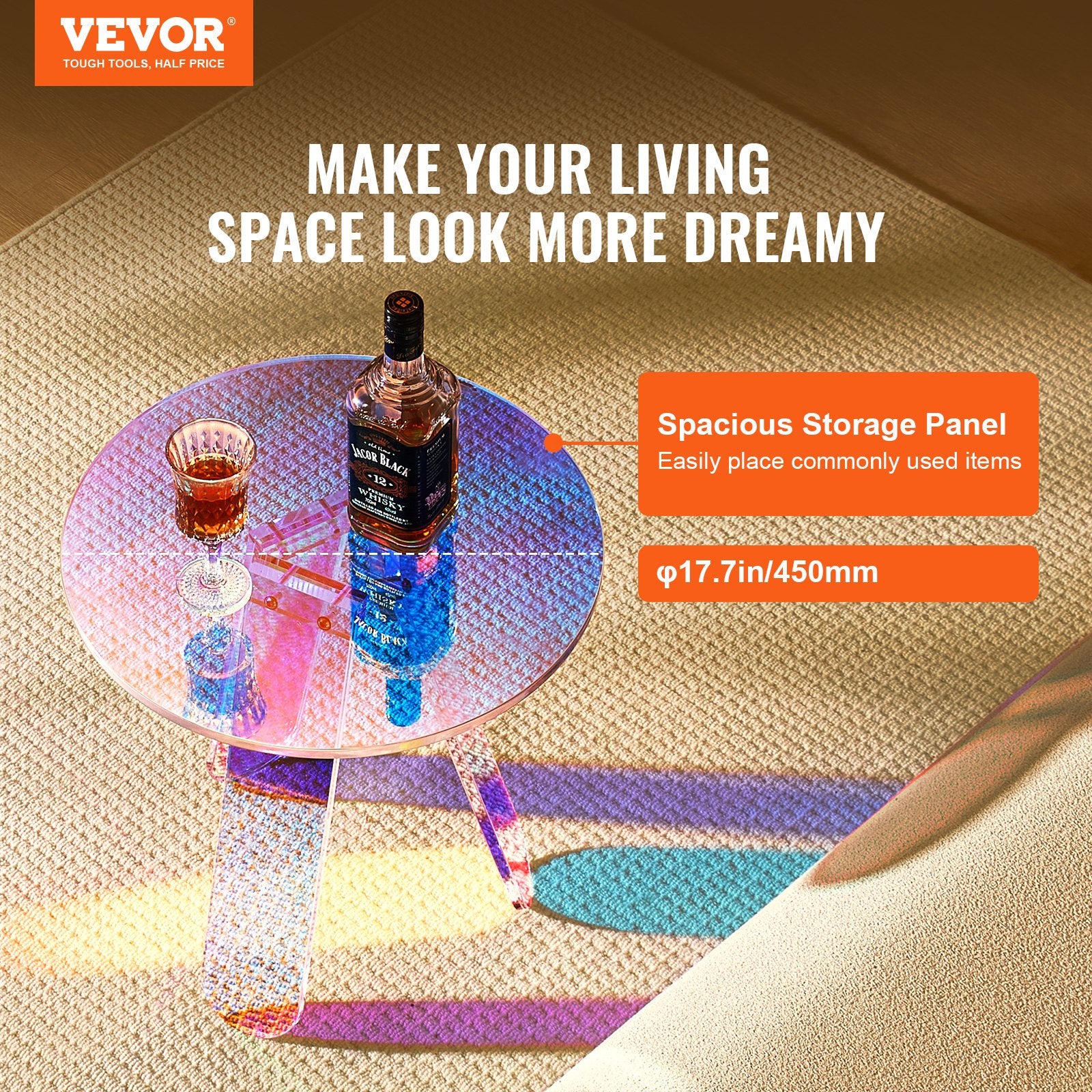 Runt iriserande sidobord, Ändbord i akryl, Klart regnbågssoffbord i akryl för dryck, mat, mellanmål som används i vardagsrum, sovrum och arbetsrum