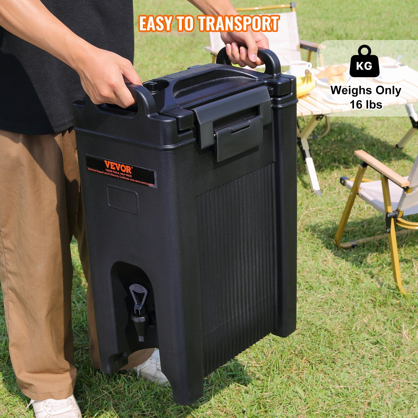 Icke-elektrisk isolering: Tillverkad med en LDPE-yta och ett 0,9 tum (23 mm) PU-skumlager, vår dispenser för varma och kalla drycker är din favorit för exceptionell isolering. Det håller dina drycker vid den idealiska temperaturen i över 10 timmar utan att behöva el eller någon extern strömkälla. De två integrerade nylonspärrarna drar åt locket säkert och låser in den önskade innertemperaturen.