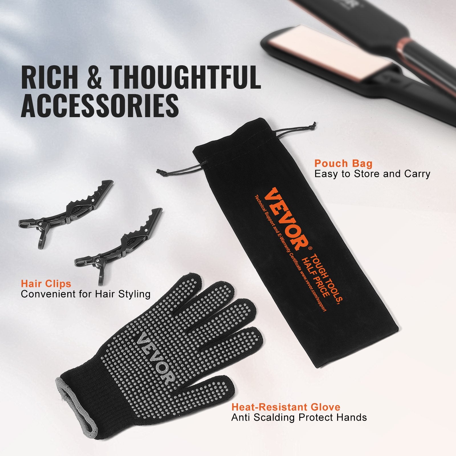 Snabb uppvärmning, varaktig stil: Med hjälp av högkvalitativ 2-tums värmeplatta i titan, värms VEVOR professionell hårplattång upp snabbt och jämnt, vilket säkerställer effektiv och jämn värmefördelning. Den är korrosionsbeständig och hållbar och ger optimalt skydd för varje hårstrå och skapar smidigt och rakt hår utan ansträngning.