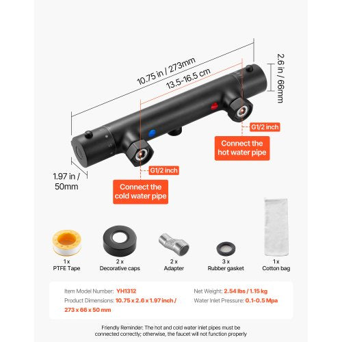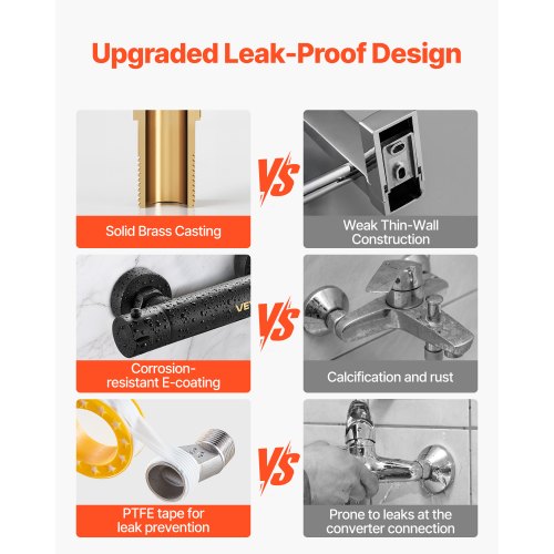 Enkel läckagekontroll: Denna termostatstyrda duschblandare för husvagnar är utrustad med rörmokartejp och ger extra skydd mot läckor. G1/2-tums inlopp är kompatibelt med standardsystem. Röda och blå klistermärken hjälper dig att ansluta varm- och kallvattenledningar korrekt varje gång.
