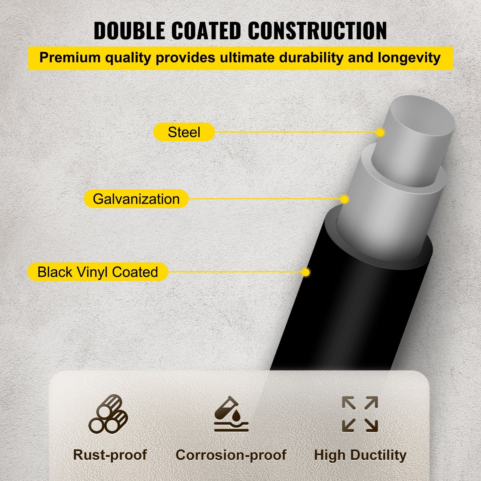 Vinylbelagt galvaniserat stål: Vår hårdvaruduk är gjord av slitstarkt stål. Galvanisering och en svart vinylbeläggning ger maximal rost- och korrosionsbeständighet och hög duktilitet. Premiummaterialet säkerställer också ultimat livslängd.