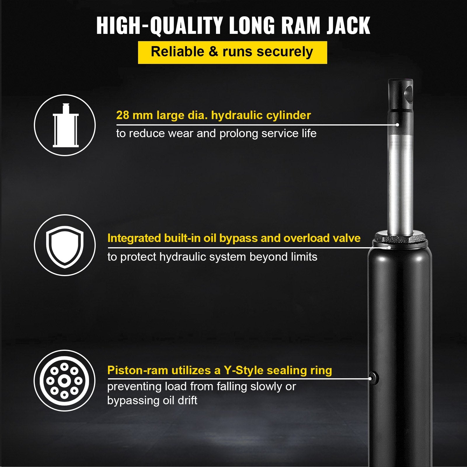 Arbetsbesparande lång ram: Lång ramdomkraft har ett bekvämt handtag med ett gummerat komfortgrepp. Clevis stil bas gör att domkraften kan monteras direkt på de flesta butikskranar. Och den glidande tryckpumpen är designad för att lyfta med minimala muskler och ansträngning.