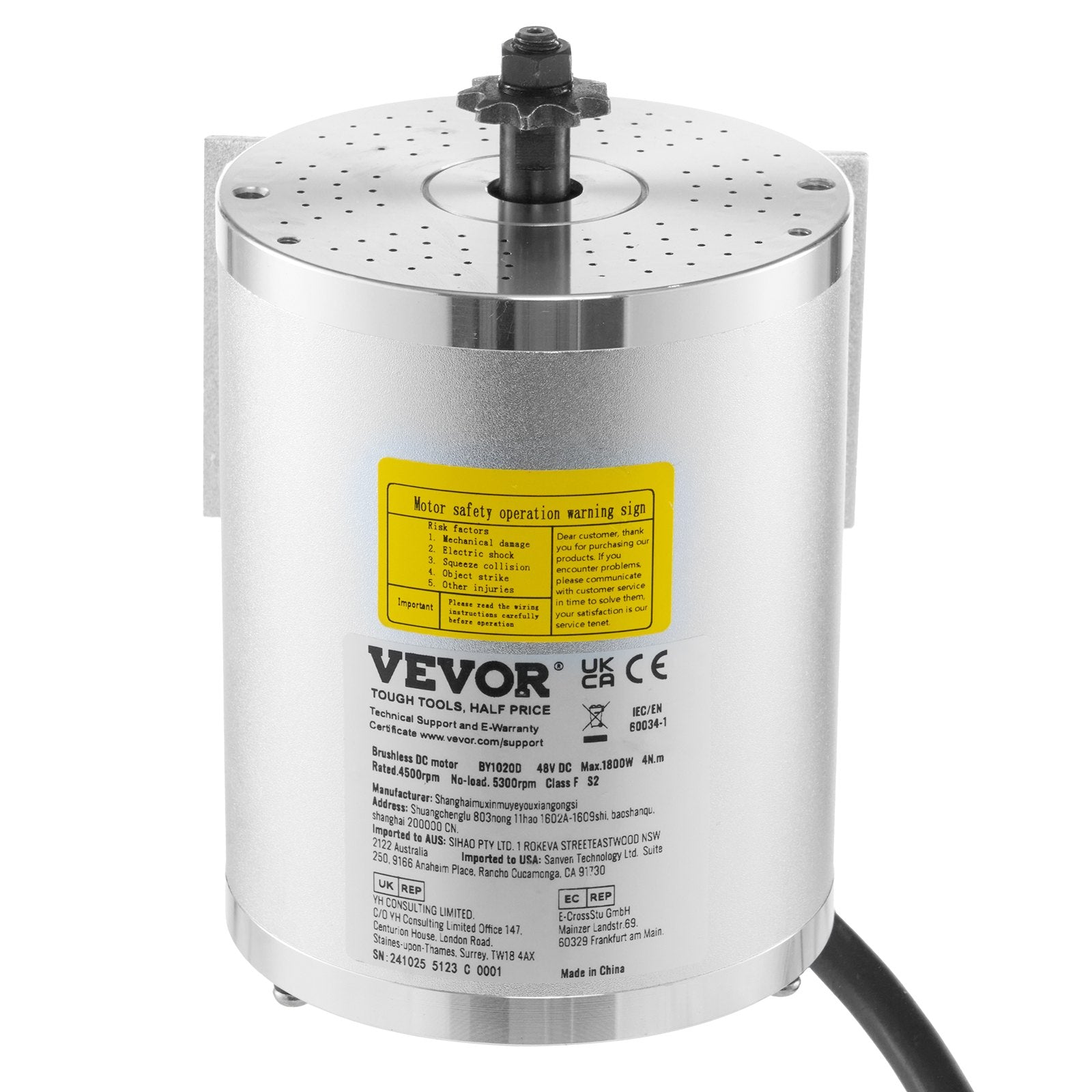 Högeffekt, effektiv prestanda: VEVOR borstlös DC-motor levererar 1800W uteffekt och fungerar effektivt med 85 % konverteringseffektivitet, vilket säkerställer pålitlig hastighet även i utmanande terräng och mindre energiförbrukning. Perfekt för elcyklar, skotrar och andra DIY elfordonsprojekt som kräver hög prestanda.