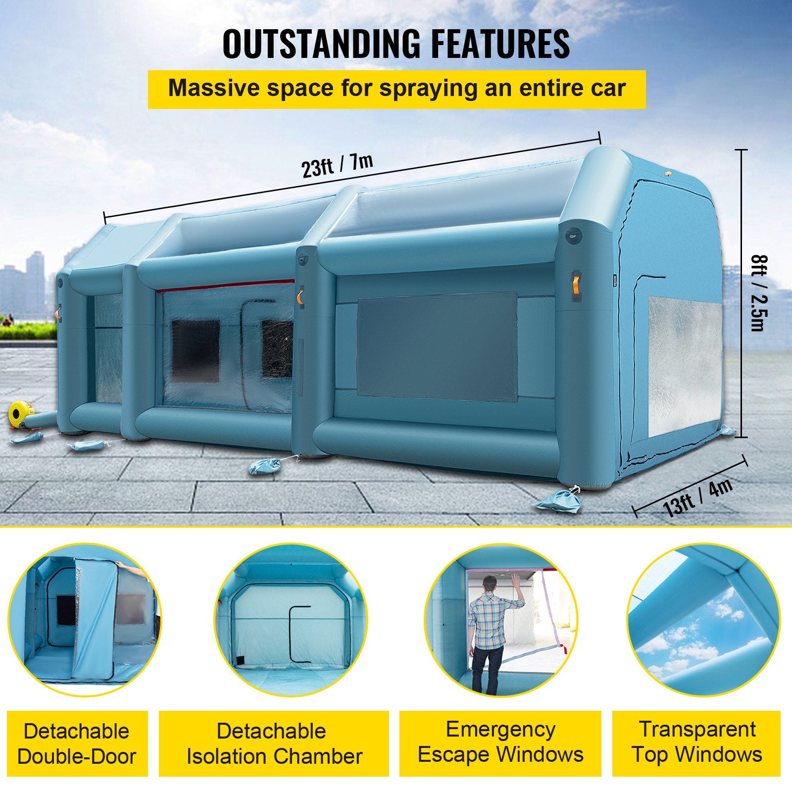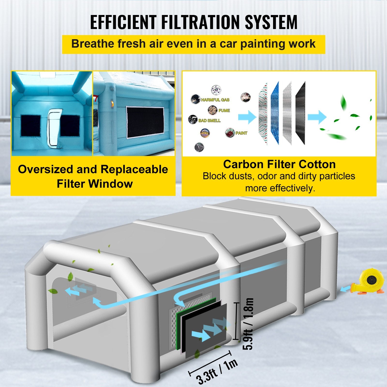 Uppblåsbar Spraybås Billack Tält 7 x 4 x 2,5 m Filtersystem 2 Blåsare