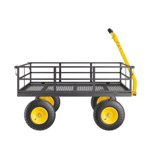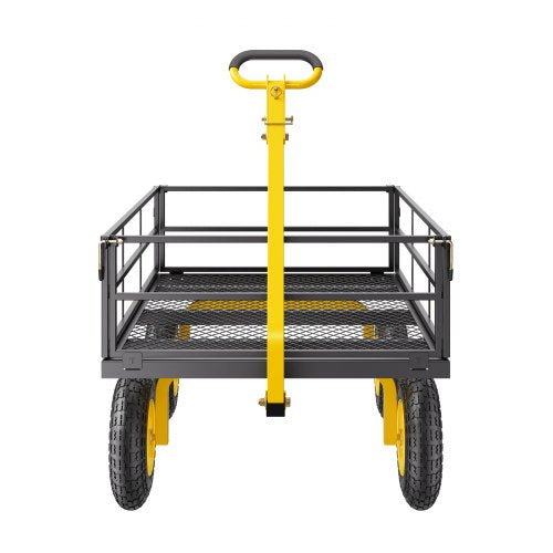 3-i-1 multifunktionell design: Denna trädgårdsvagn i stål fungerar som en inhägnad vagn, en flakvagn eller en släpvagn, vilket ger mångsidighet för olika uppgifter. Med ett rymligt flak på 9,03 kubikfot kan den enkelt hantera lösa material eller skrymmande föremål, vilket ger den perfekta lösningen för dina trädgårds- och landskapsarkitekturbehov.